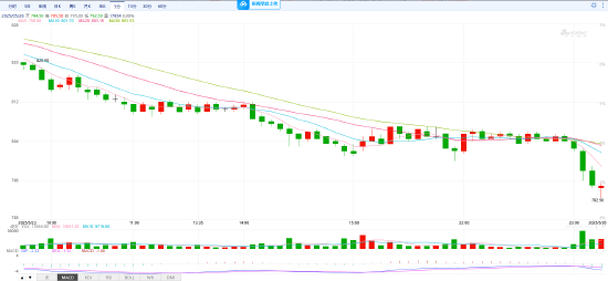 北京时间5月26日上午,焦煤价格跌破800元关口 现报794.5,日内跌幅2.58%